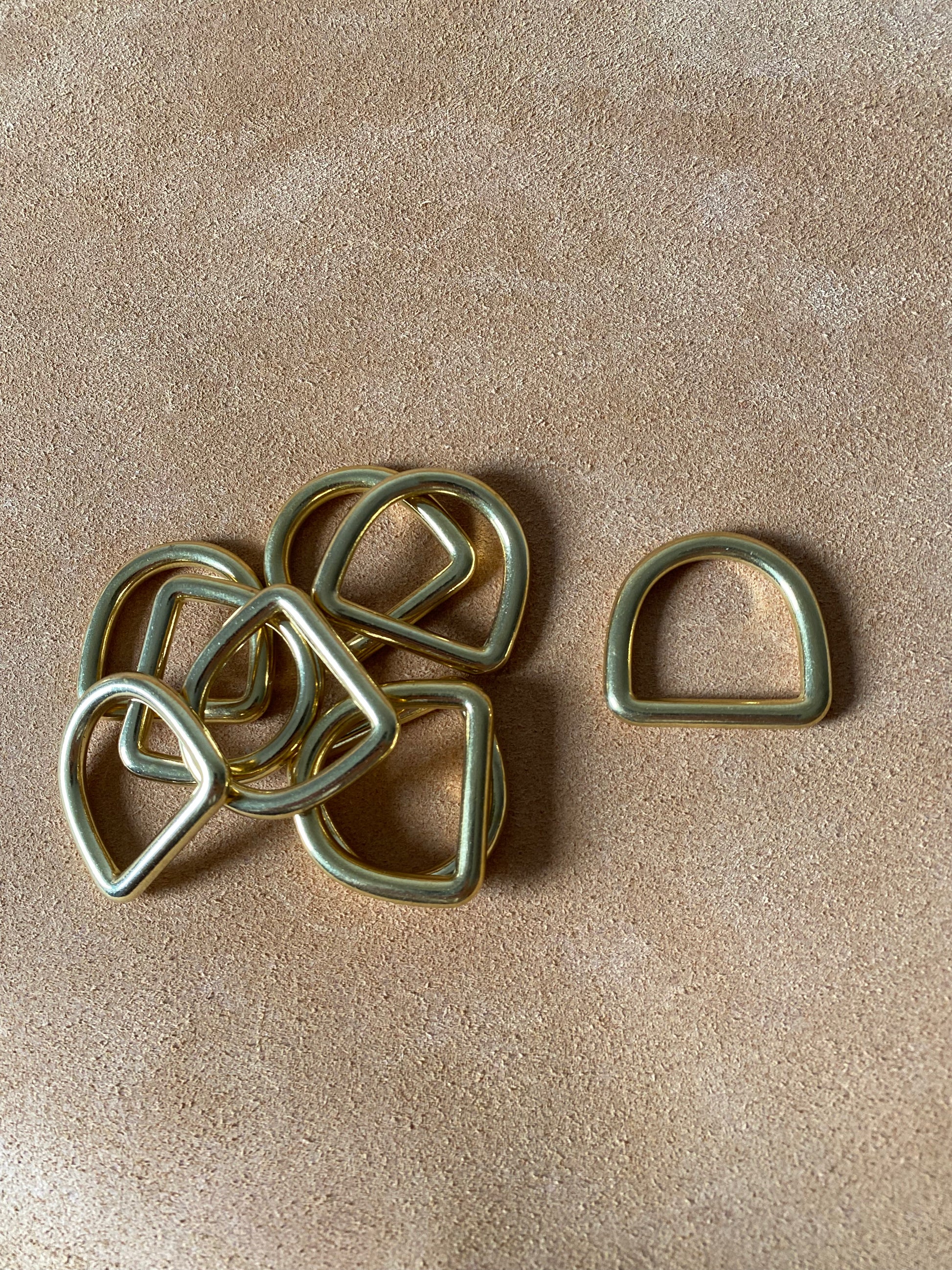Pure brass D-rings. The surface has no finish, polished, made using casting process.