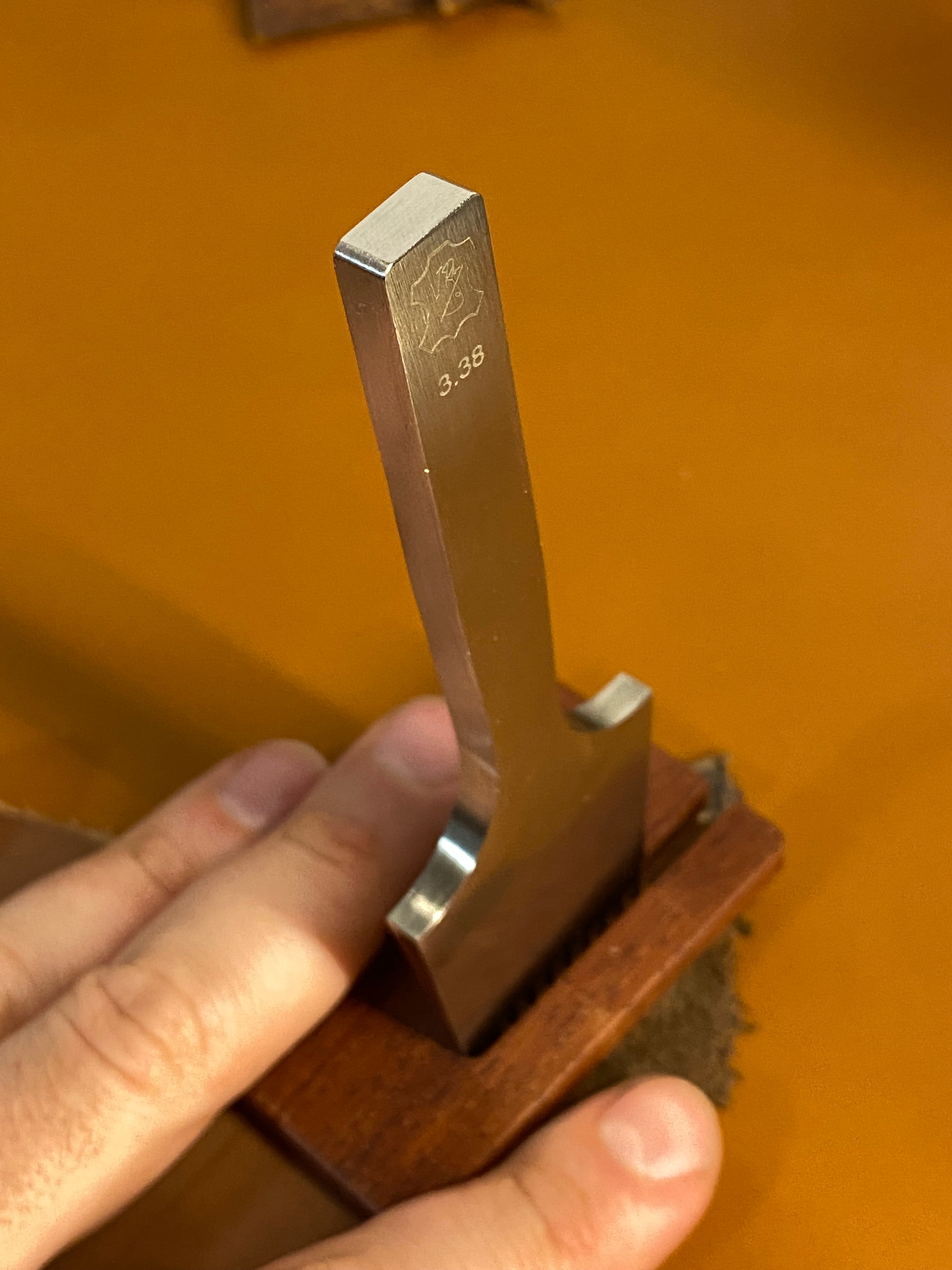Your little helper when sewing. Protects the leather from deformation when pulling out a pricking iron.