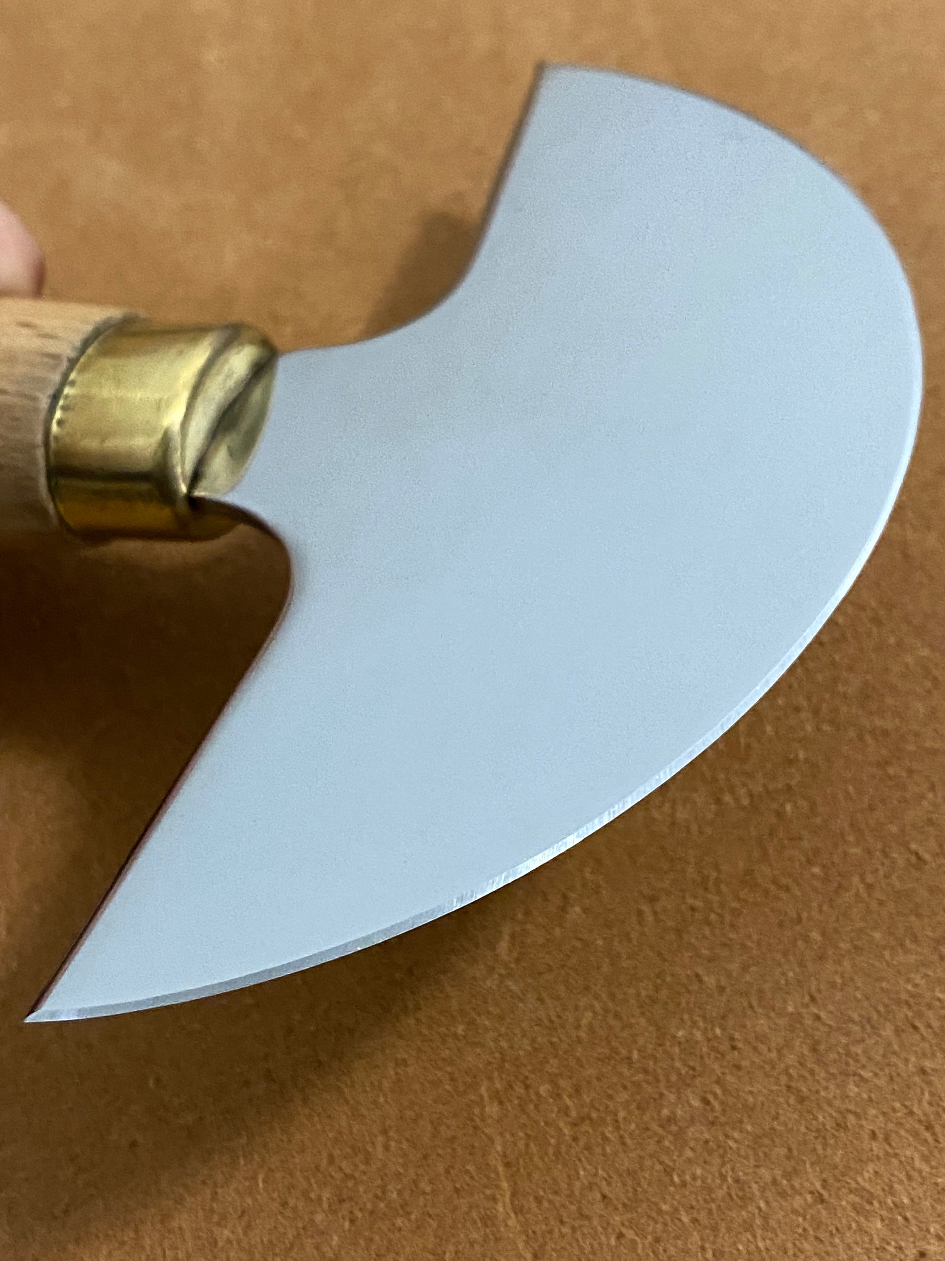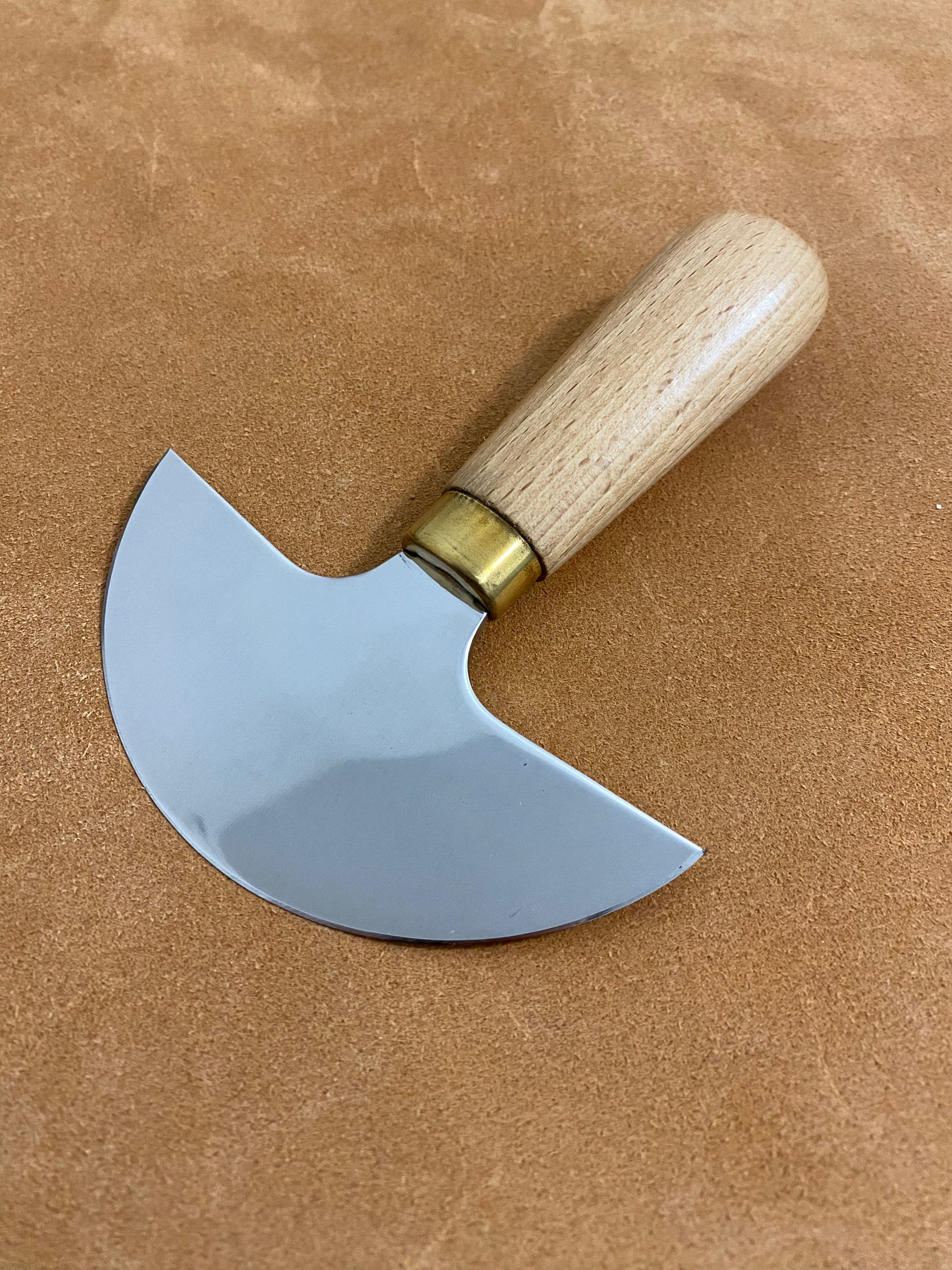 Halbmondmesser/Sattlermesser mit einem Griff aus Hartholz.