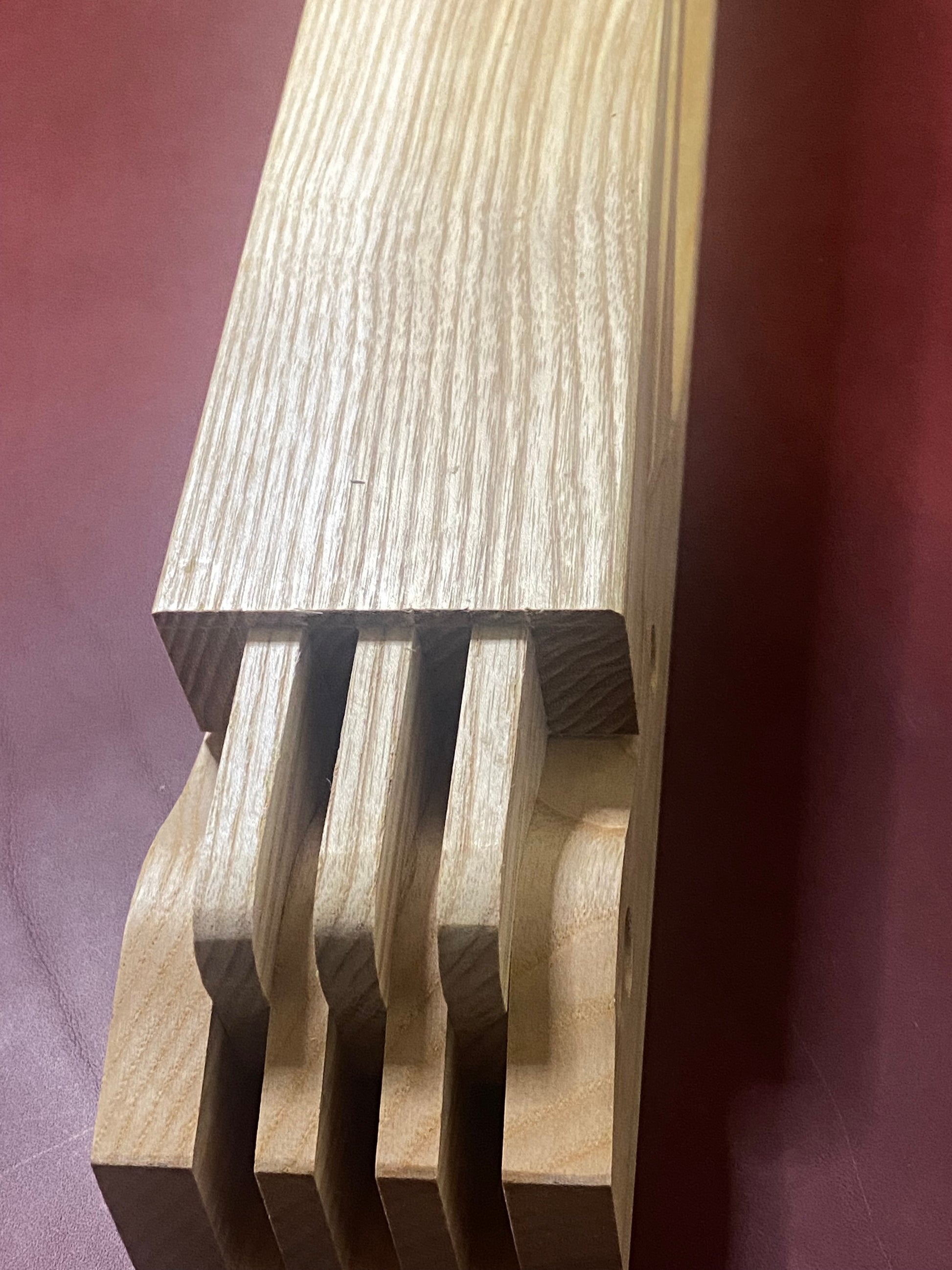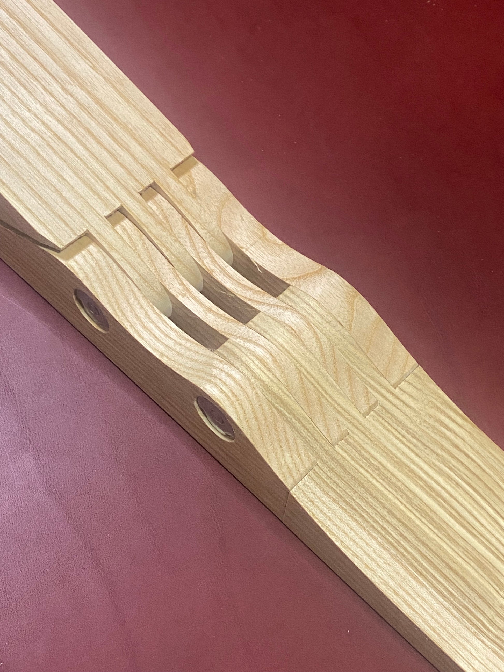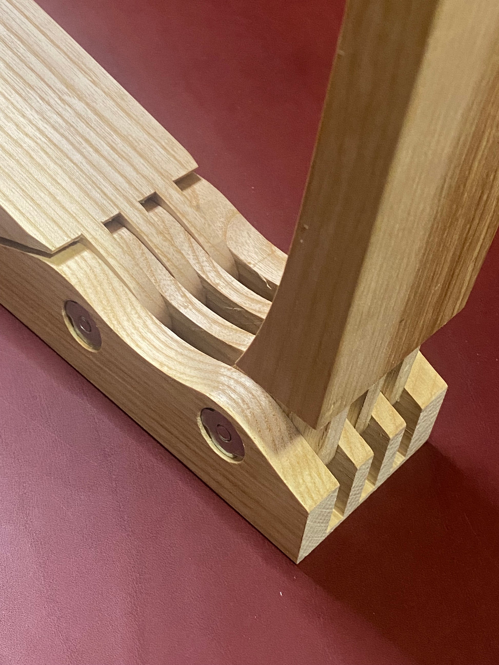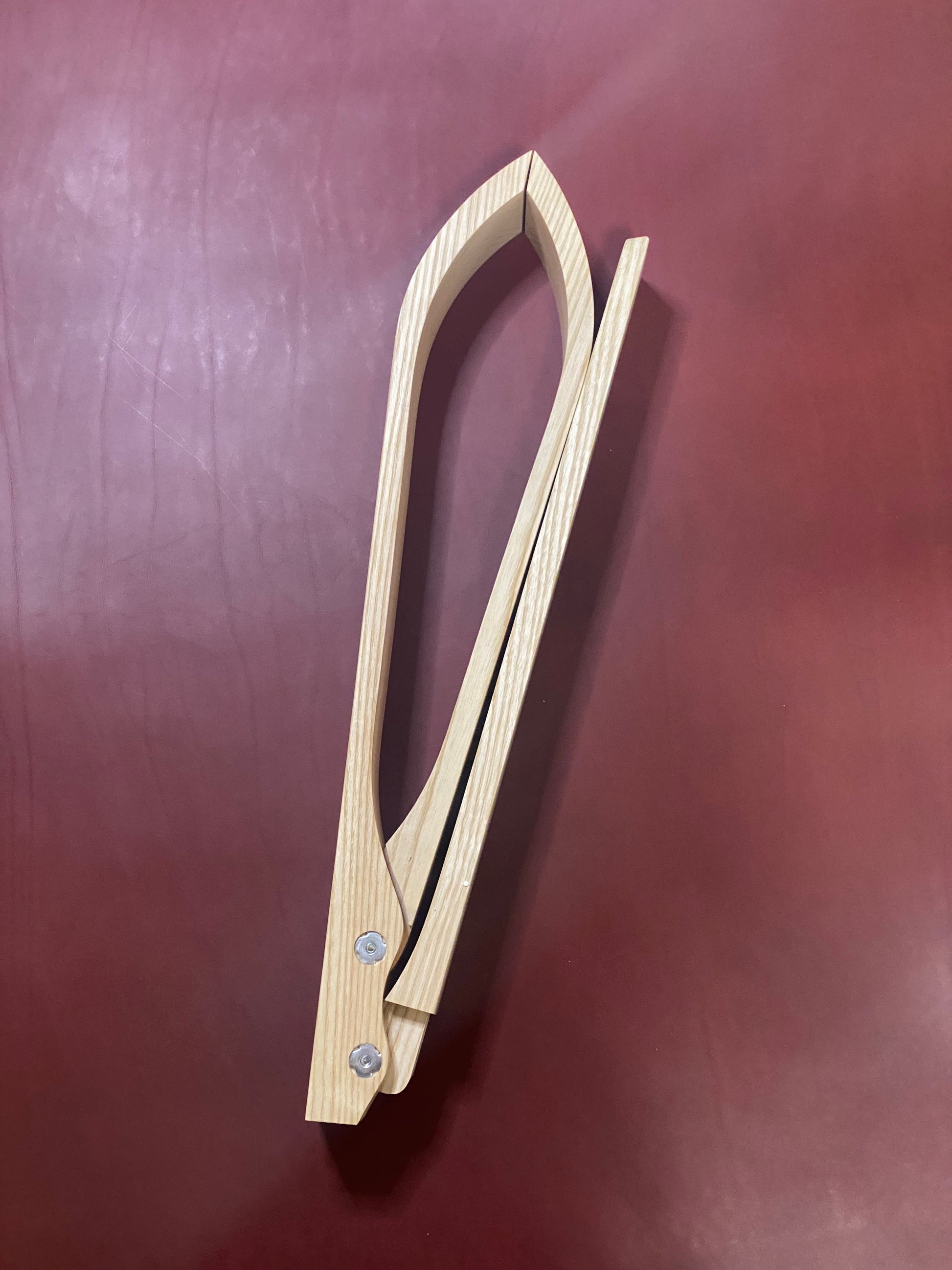 Klappbarer Nähkloben aus massivem Eschenholz.